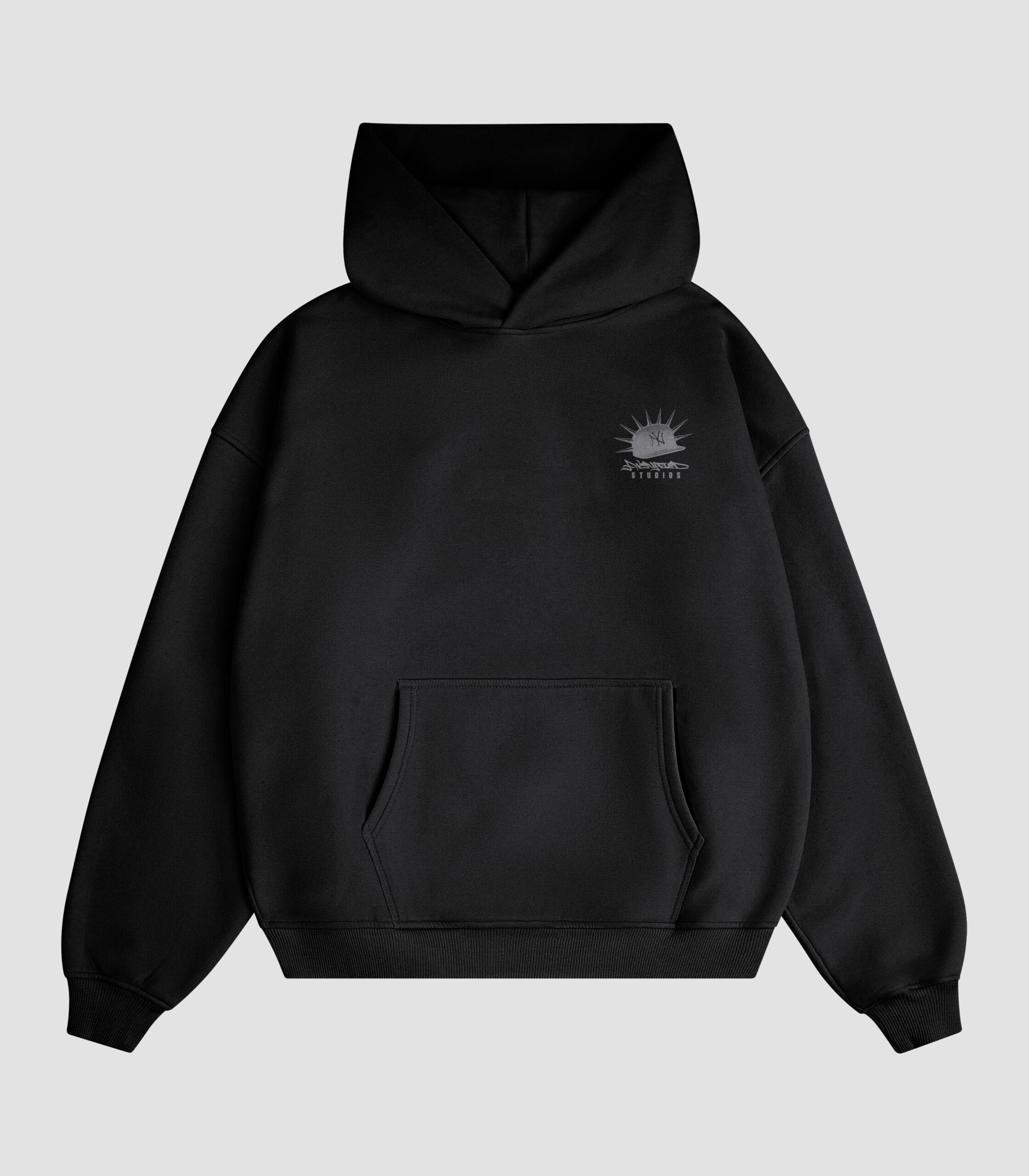 Bluza z kapturem 460gsm w kroju Boxy/Oversize w czarnej kolorystyce.